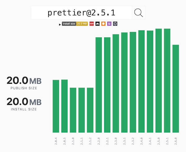 実は先日リリースした Prettier 2.6 では前のバージョンである 2.5.1 と比べてバンドルサイズが 3MB ほど減っています。